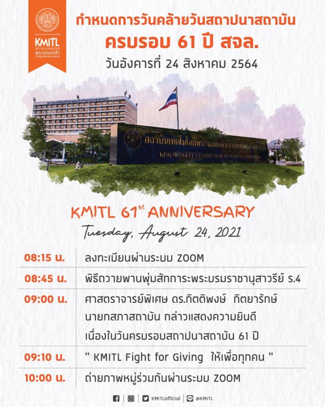 กำหนดการวันคล้ายวันสถาปนาสถาบัน ครบรอบ 61 ปี สจล.