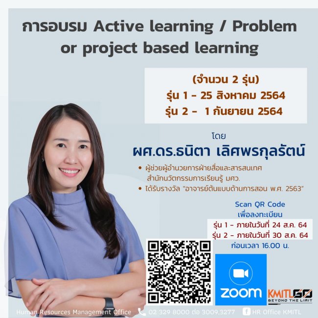 ขอเชิญบุคลากรสายวิชาการเข้าร่วมรับฟังการบรรยายหัวข้อ “Active Learning