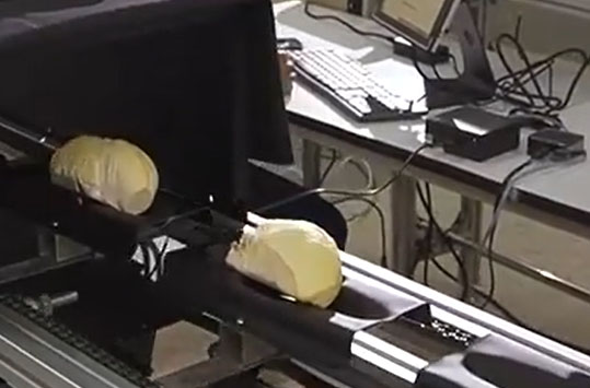 เครื่องคัดแยกระดับคุณภาพของเนื้อทุเรียนบนโซ่ถาดลําเลียง