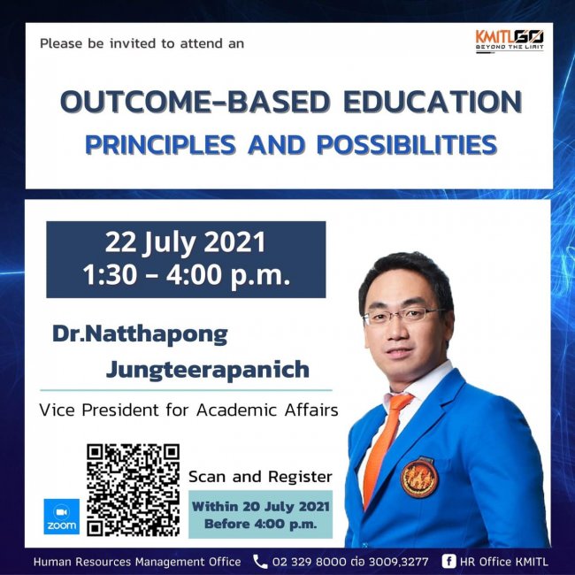 ขอเชิญบุคลากรสายวิชาการเข้าร่วมรับฟังการบรรยายหัวข้อ “Outcome-based Education เบื้องต้น”