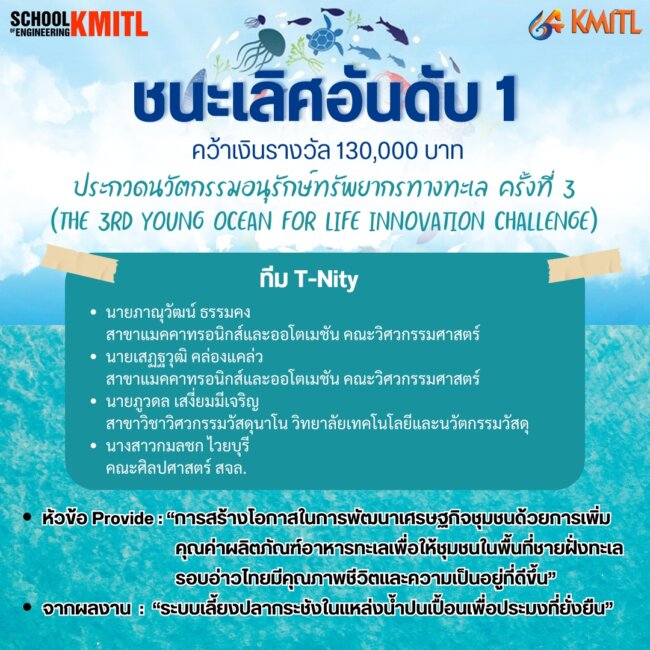 ขอแสดงความยินดีกับทีม T-Nity ในโอกาสได้รับรางวัลชนะเลิศอันดับหนึ่ง จากหัวข้อ Provide