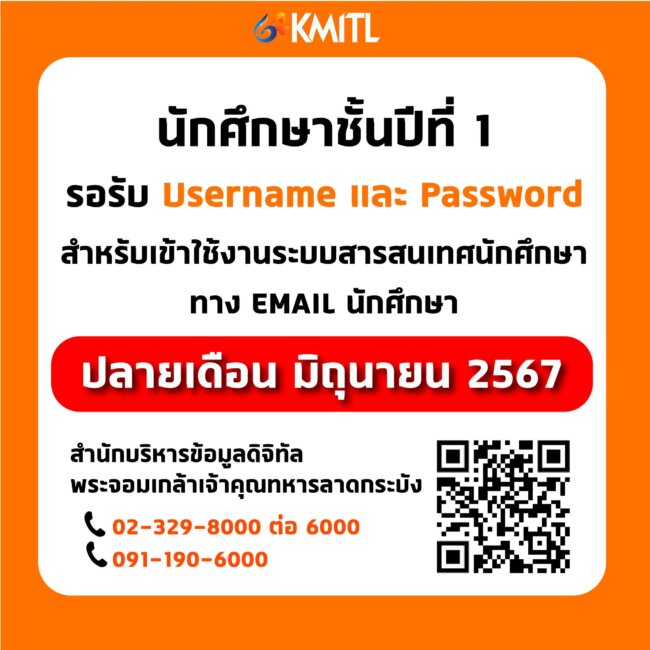 นักศึกษาชั้นปีที่ 1 รอรับ Username และ Password สำหรับเข้าใช้งานระบบสารสนเทศนักศึกษา ทาง EMAIL นักศึกษา