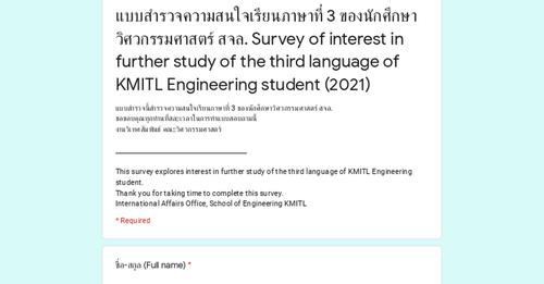 ขอความร่วมมือนักศึกษาคณะวิศวกรรมศาสตร์ ตอบแบบสอบถาม