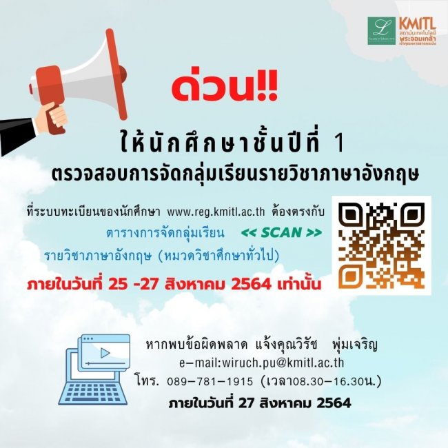 ตรวจสอบกลุ่มวิชาเรียนภาษาอังกฤษ (หมวดวิชาศึกษาทั่วไป)