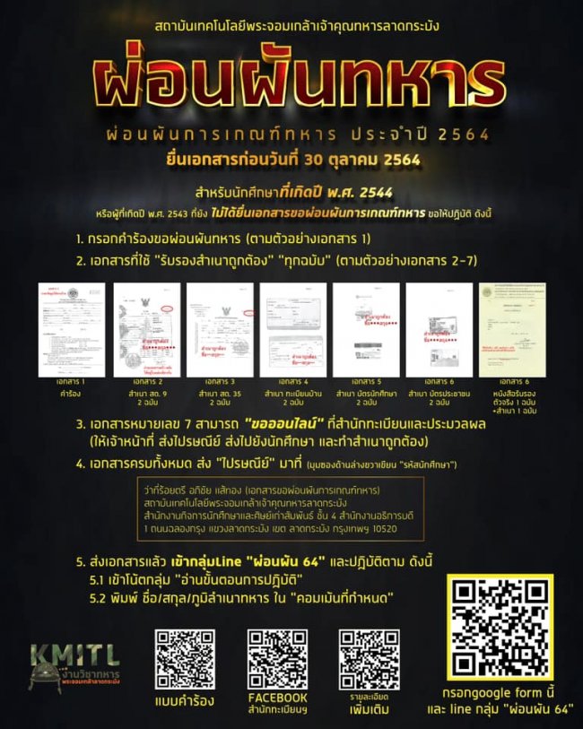 ผ่อนผันการเกณฑ์ทหาร ประจำปี 2564