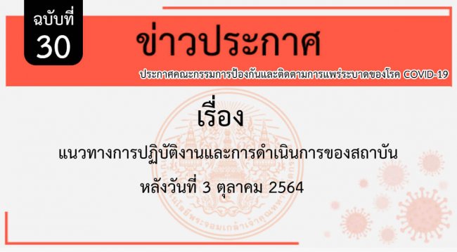 ประกาศคณะกรรมการป้องกันและติดตามการแพร่ระบาดของโรค COVID-19 ฉบับที่ 30