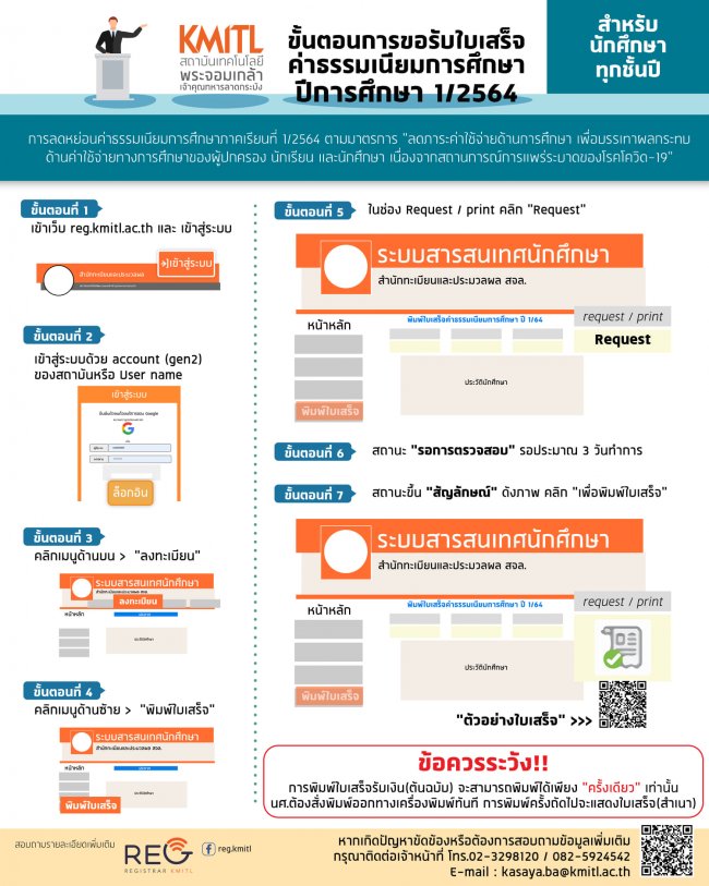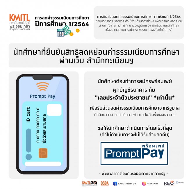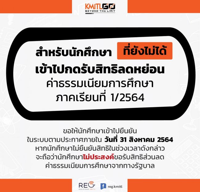 รับสิทธิลดหย่อนค่าธรรมเนียมการศึกษา ภาคเรียนที่ 1/2564