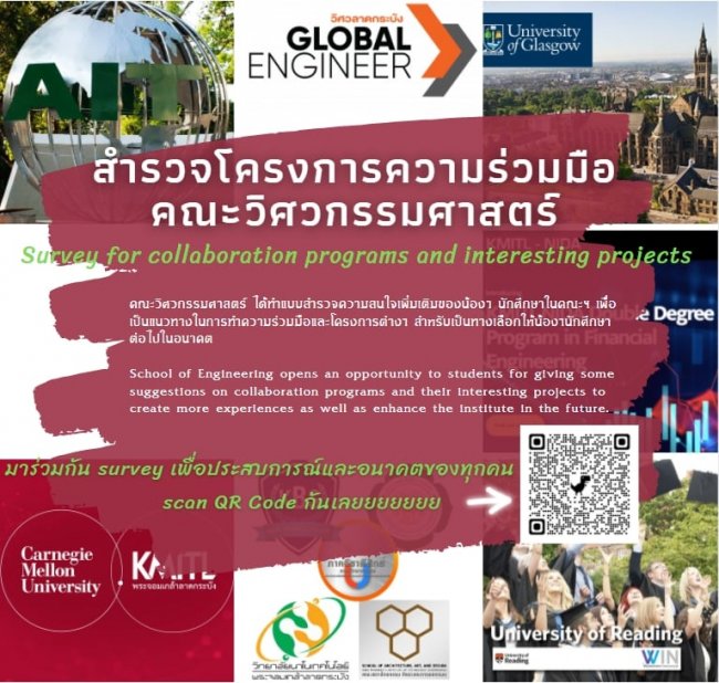 ขอเชิญน้องๆ วิศวลาดกระบังทุกคน ทำแบบสำรวจโครงการความร่วมมือคณะวิศวกรรมศาสตร์