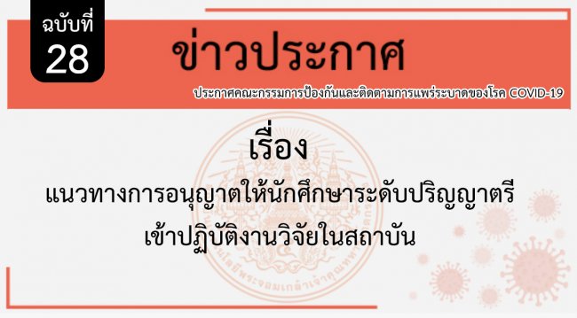 แนวทางการอนุญาตให้นักศึกษาระดับปริญญาตรีเข้าปฏิบัติงานวิจัยในสถาบัน ฉบับที่ 28