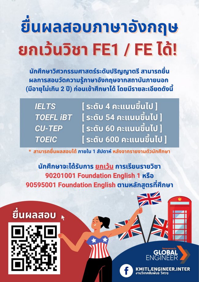 ยื่นผลคะแนนภาษาอังกฤษ เพื่อยกเว้นวิชา FE1/ FE