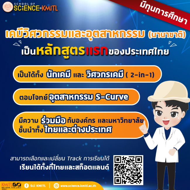 TCAS4 เคมีวิศวกรรมและอุตสาหกรรม (นานาชาติ) มีทุนการศึกษา
