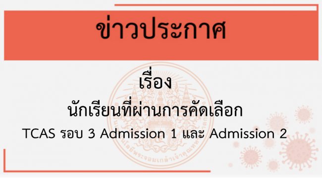 ขอแสดงความยินดีกับน้องๆ ที่ผ่านการคัดเลือก TCAS รอบ 3 Admission 1 และ Admission 2