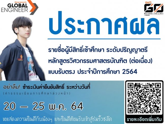 ประกาศ รายชื่อผู้มีสิทธิ์เข้าศึกษา แบบรับตรง โครงการรับ ปวส.ต่อปริญญาตรี