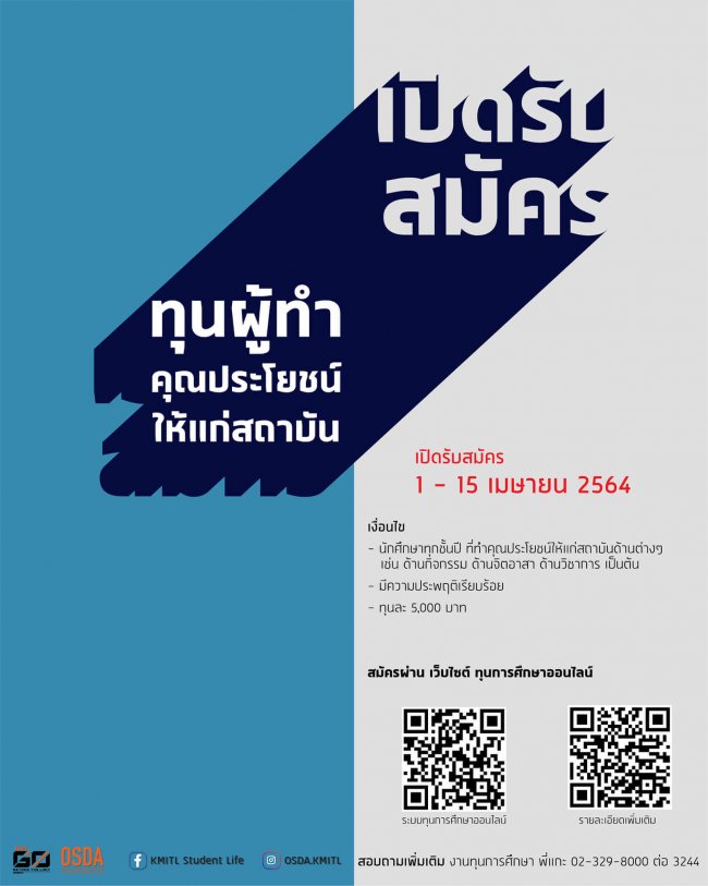 เปิดรับสมัคร ทุนผู้ทำคุณประโยชน์ให้แก่ สถาบัน (ทุนนักกิจกรรม)