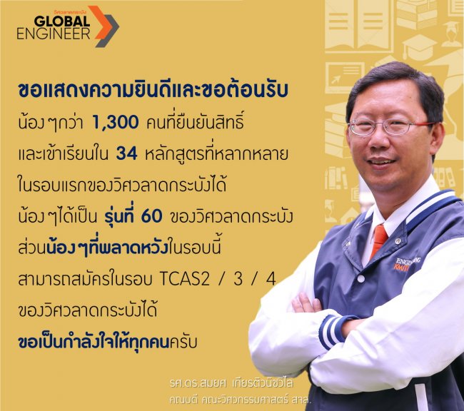 ขอแสดงความยินดีและขอต้อนรับน้องๆกว่า 1,300 คนที่ยืนยันสิทธิ์และเข้าเรียนใน 34 หลักสูตร
