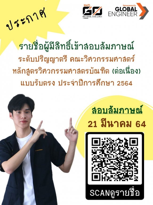 รายชื่อผู้มีสิทธิ์เข้าสอบสัมภาษณ์ระดับปริญญาตรี คณะวิศวฯหลักสูตรวิศวกรรมศาสตรบัณฑิต (ต่อเนื่อง)