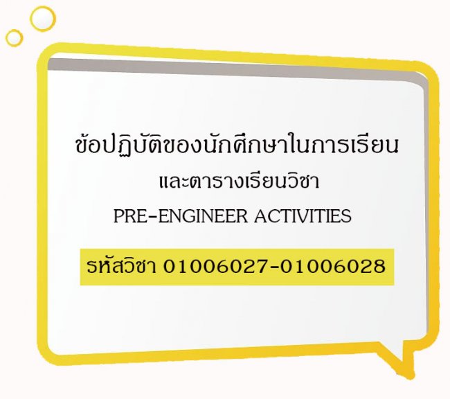 ข้อปฏิบัติของนักศึกษาในการเรียน และตารางเรียนวิชา PRE-ENGINEER ACTIVITIES