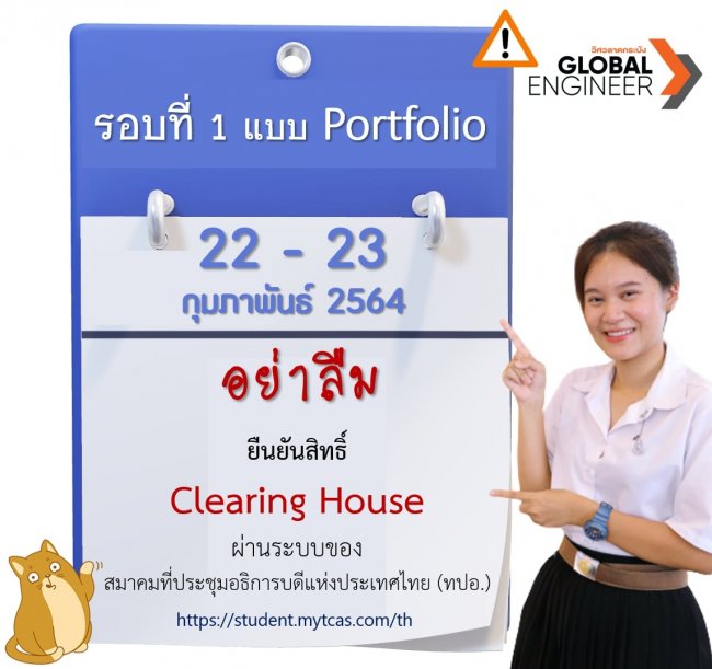 ยืนยันสิทธิ์ Clearing House ภายในวันที่ 22 –23 กุมภาพันธ์ 2564 ผ่านระบบ