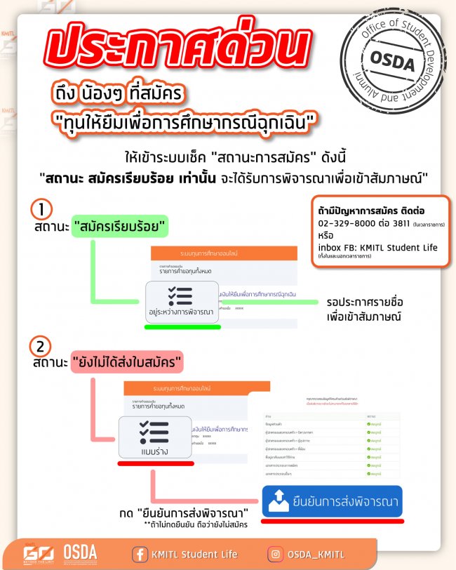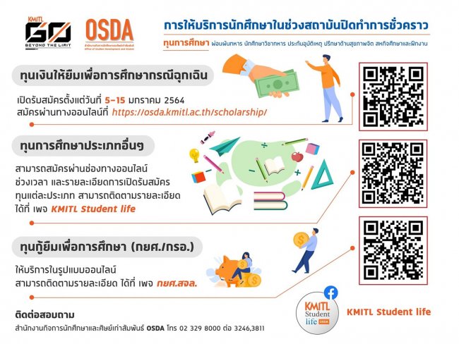 การใช้บริการนักศึกษาในช่วงสถาบันปิดทำการชั่วคราว ทุนเงินให้ยืม ทุนการศึกษา ทุนกู้ยืม
