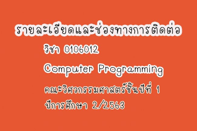 รายละเอียดและช่องทางการติดต่อ 0106012 Computer Programming