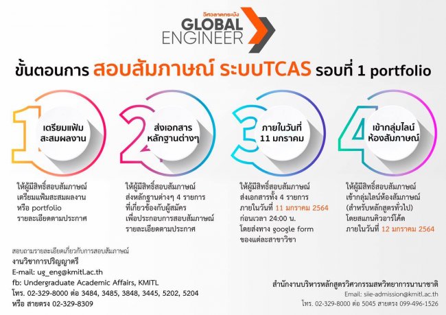 ขั้นตอนการส่งเอกสารและสอบสัมภาษณ์ TCas1 (Portfolio)