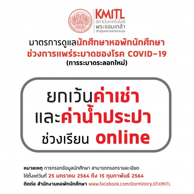 มาตรการช่วยเหลือ ยกเว้นค่าหอพักนักศึกษาหอพักสถาบัน