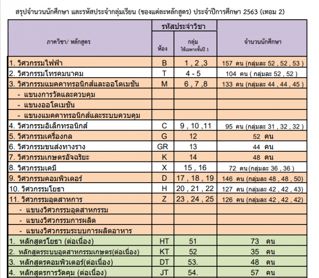 ใบสรุปจำนวนนักศึกษา และรหัสประจำกลุ่มเรียน(ของหลักสูตรปกติ)