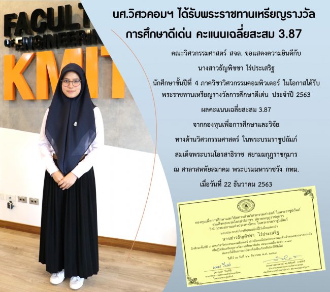 นศ.วิศวฯ คอมพิวเตอร์ ได้รับรางวัลพระราชทาน เหรียญรางวัลเรียนดี