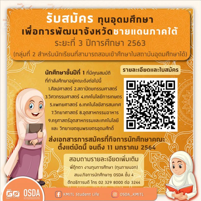 รับสมัครทุนอุดมศึกษา เพื่อการพัฒนาจังหวัดชายแดนภาคใต้