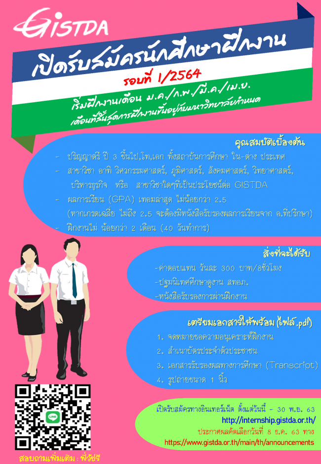 Gisda เปิดรับสมัครนักศึกษาฝึกงาน รอบที่ 1/2564