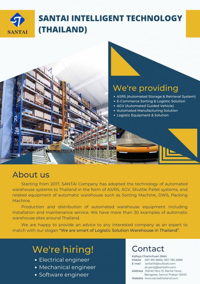 บริษัท ซันไท่ อินเทลลิเจนท์ เทคโนโลยี (ประเทศไทย) จำกัด ประกาศรับสมัคร นักศึกษาสนใจสมัครเลย