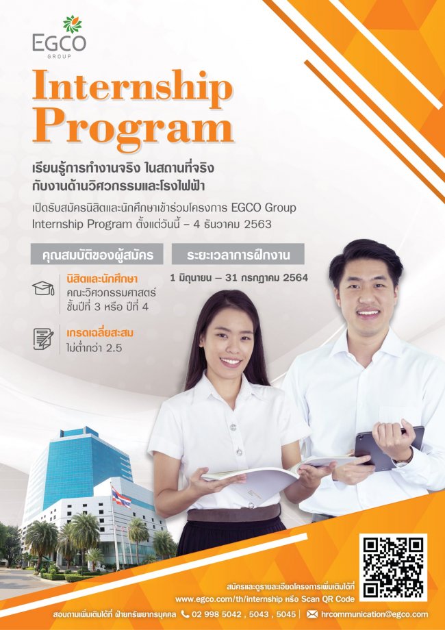 EGCO Group เปิดรับสมัครนักศึกษาเข้าร่วมโครงการ EGCO Group Internship Program