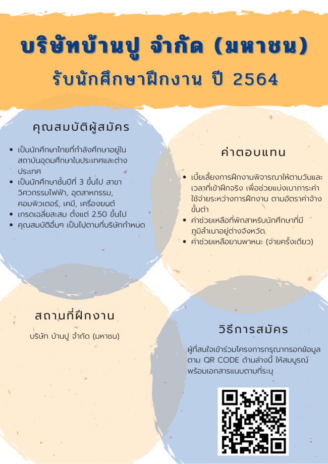 บริษัทบ้านปู จำกัด(มหาชน) รับสมัครนักศึกษาฝึกงาน ปี 2564