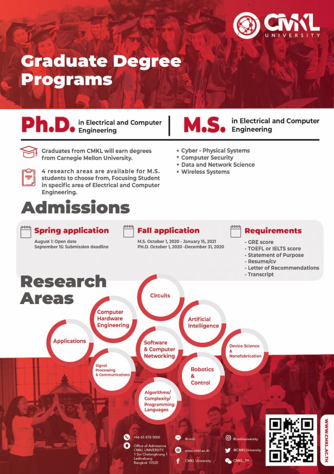 เปิดรับสมัครนักศึกษา หลักสูตรปริญญาโท และปริญญาเอก Carnegie Mellon – CMKL | Thailand