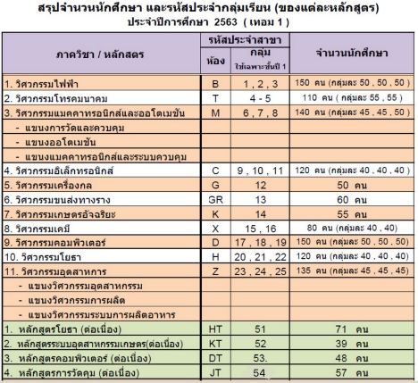 ใบสรุปจำนวนนักศึกษา และรหัสประจำกลุ่มเรียน