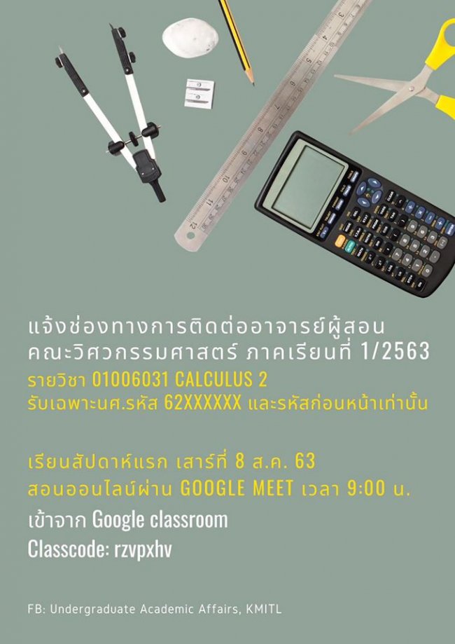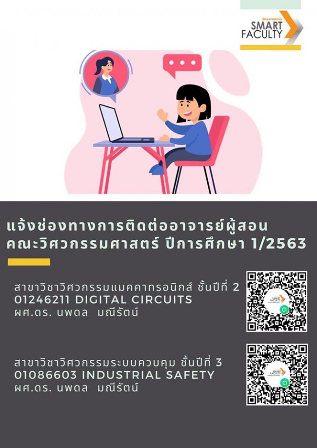 แจ้งช่องทางการติดต่ออาจารย์ผู้สอน คณะวิศวฯ ภาคเรียนที่ 1/2563
