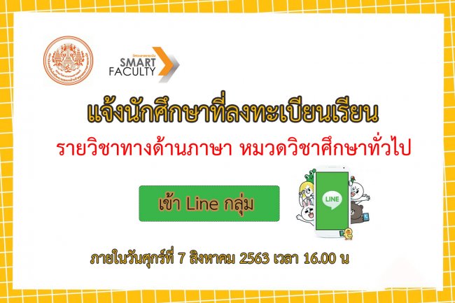 แจ้ง นศ.รายวิชาทางด้านภาษา หมวดวิชาศึกษาทั่วไป เข้าไลน์กลุ่ม