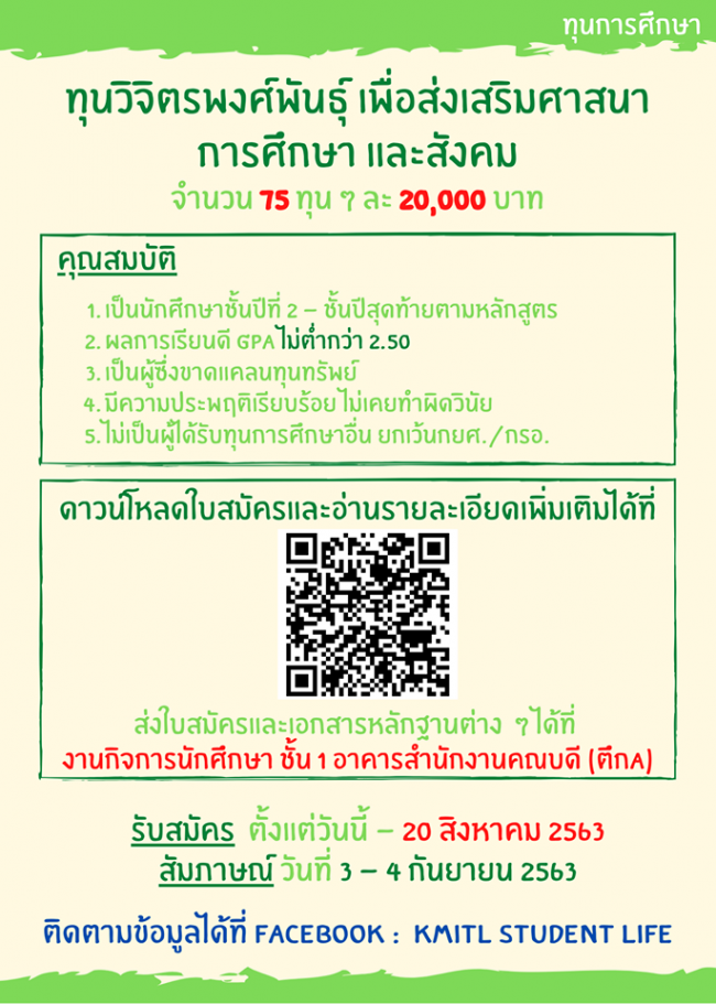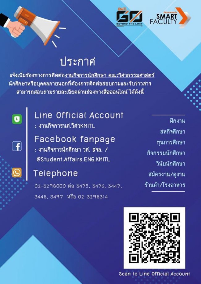 แจ้งเพิ่มช่องทางการติดต่องานกิจการนักศึกษา คณะวิศวกรรมศาสตร์