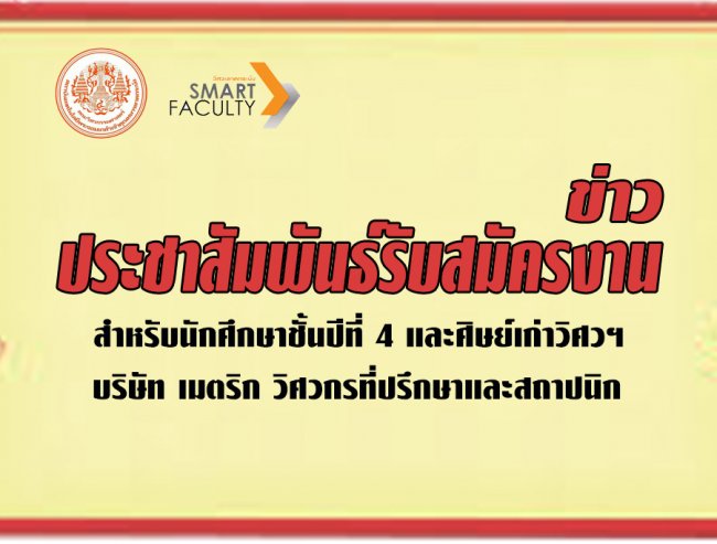 ประชาสัมพันธ์การรับสมัครงาน สำหรับนักศึกษาชั้นปีที่ 4 และศิษย์เก่าวิศวฯ