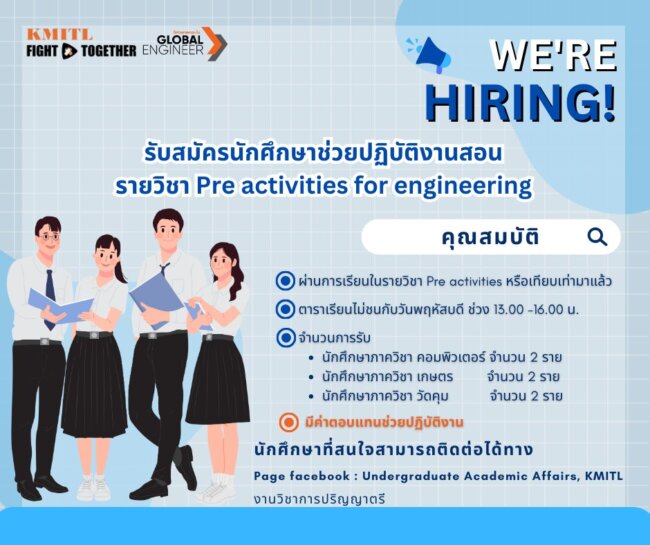 เปิดรับสมัครนักศึกษา ช่วยปฏิบัติงานสอนรายวิชา Pre activities for engineering.