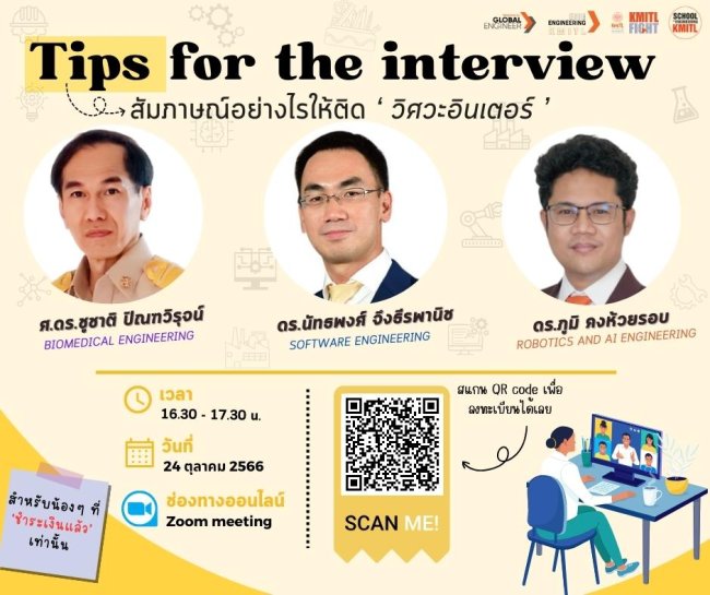 3 หลักสูตรที่จะมาให้คำแนะนำสำหรับการสอบสัมภาษณ์ ในหัวข้อ ” Tips for The Interview
