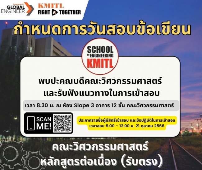 กำหนดการวันสอบข้อเขียน สำหรับผู้มีสิทธิ์สอบข้อเขียน คณะวิศวฯ หลักสูตรต่อเนื่อง รับตรง