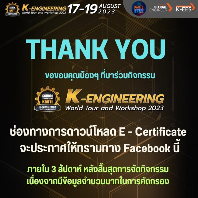 ขอขอบพระคุณทุกท่าน ที่มาร่วมกิจกรรม K-ENGINEERING World Tour and Workshop 2023