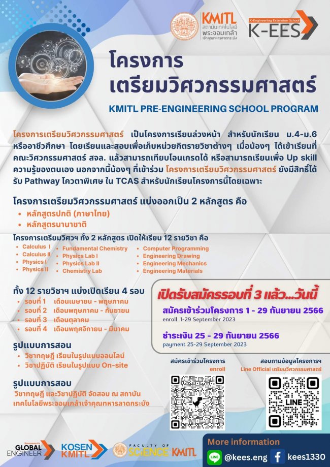 ศูนย์พัฒนศึกษาวิศวกรรมศาสตร์ (K-EES) เปิดรับสมัคร “โครงการเตรียมวิศวกรรมศาสตร์” รอบ 3