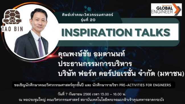 รายวิชา Pre Activities for Engineers เข้าร่วมฟังในหัวข้อ “Inspiration talk”