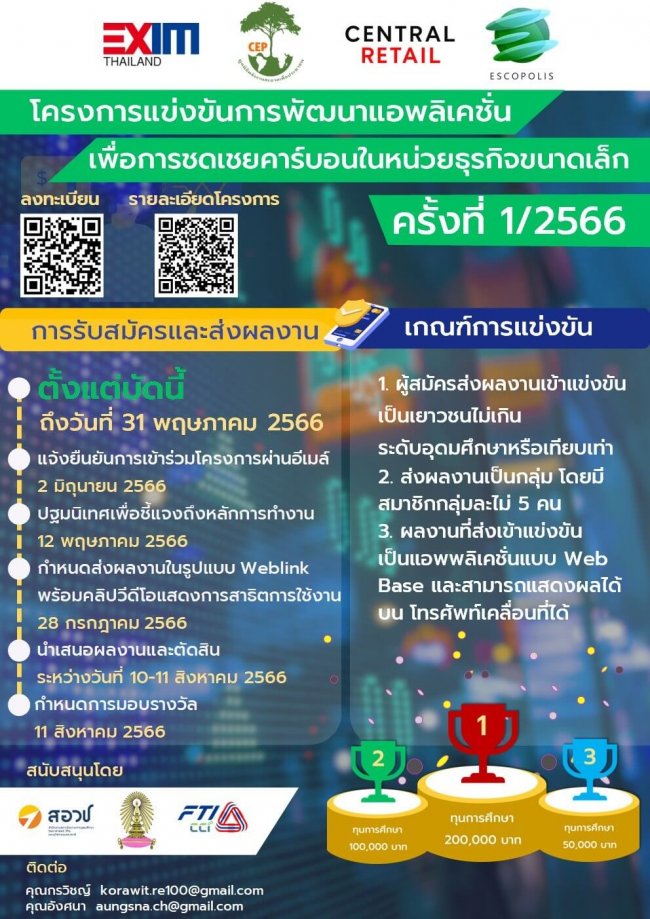 โครงการแข่งขันการพัฒนาแอพลิเคชั่นเพื่อการชดเชยคาร์บอนในหน่วยธุรกิจขนาดเล็ก ครั้งที่ 1/2566