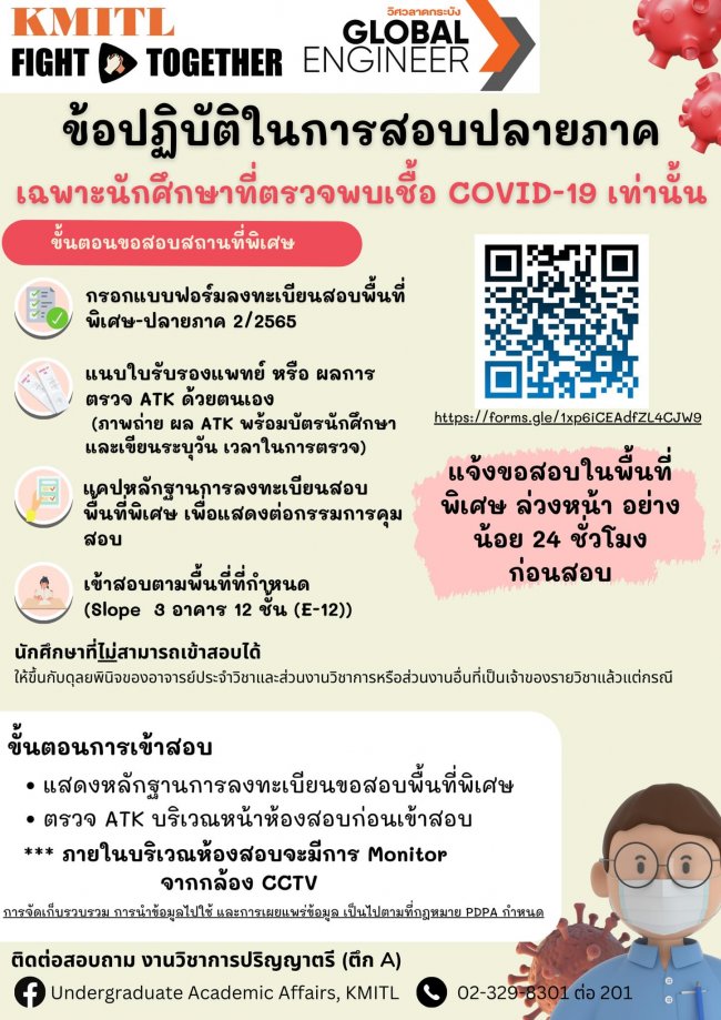 ข้อปฏิบัติการสอบปลายภาค สำหรับนักศึกษา ตรวจพบเชื้อ Covid-19
