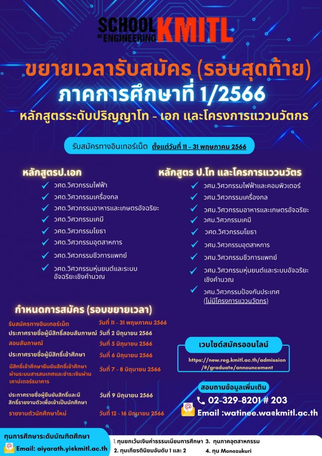 ประกาศสำหรับผู้สนใจเข้าศึกษาต่อระดับปริญญาโท -เอก และโครงการแววนวัตกร