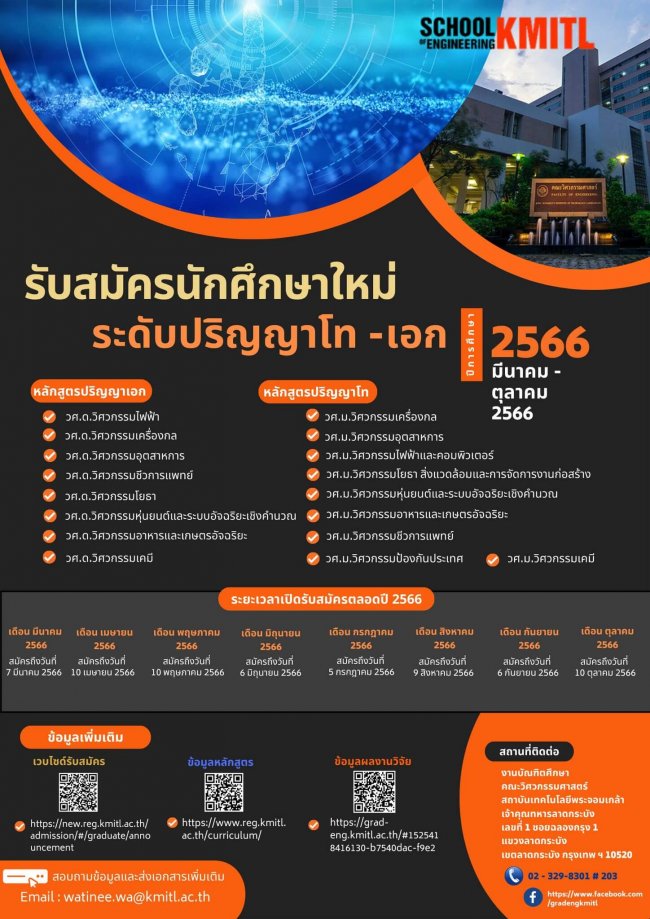 สมัครด่วนป.โท-เอก รับสมัครรอบสุดท้ายของภาคการศึกษาที่ 1 / 2566 วันที่ 10 พฤษภาคม นี้
