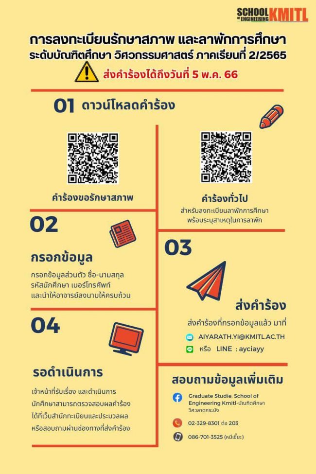 5 พฤษภาคม 2566 วันสุดท้ายของการลงทะเบียนรักษาสภาพและลาพักการศึกษา ประจำภาคการศึกษาที่ 2/2565